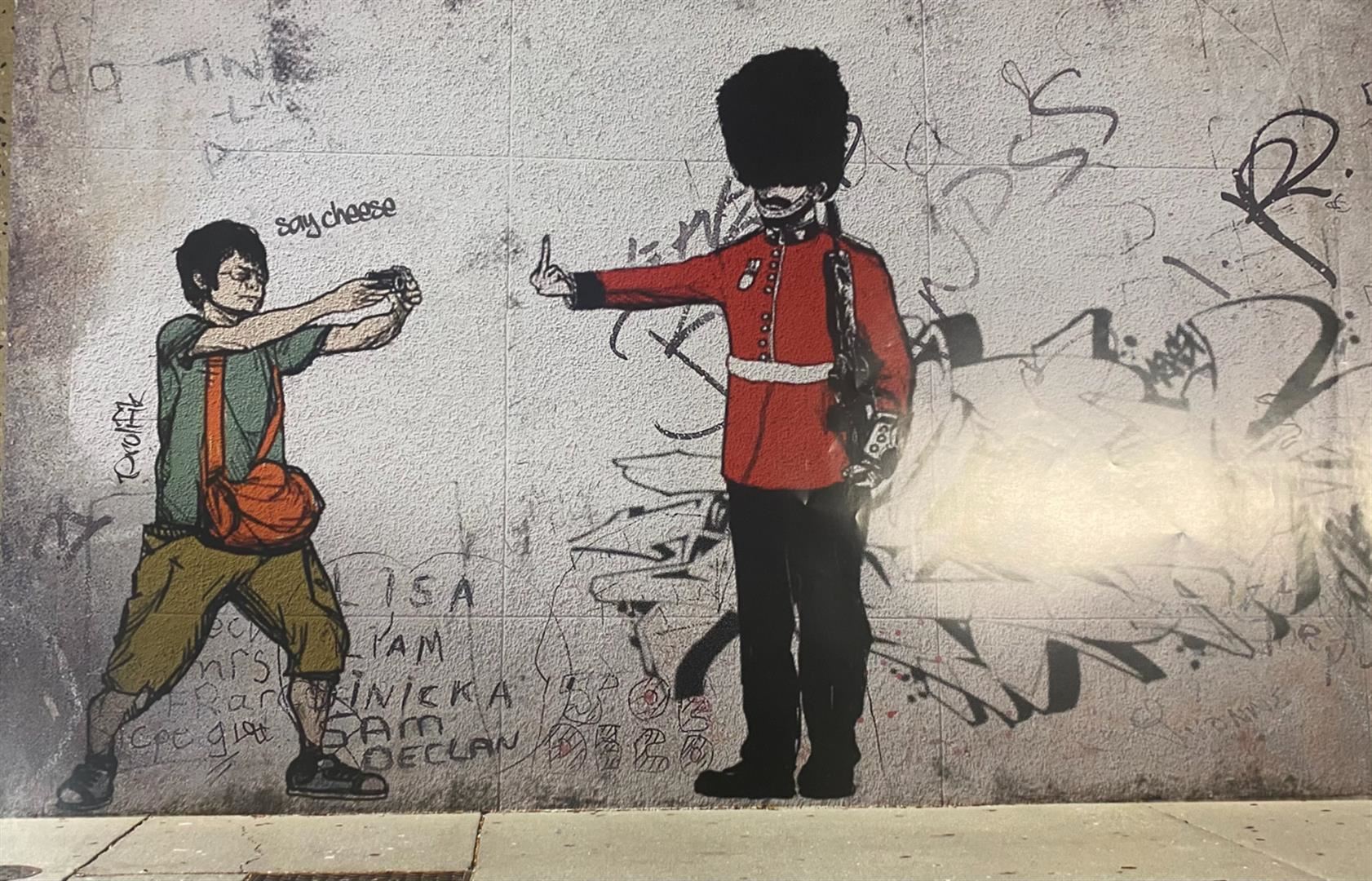 Street Art London by Banksy. Open Unsigned Offset Lithograph. Dimensions: 24 x 36. This piece has some creases in the image.