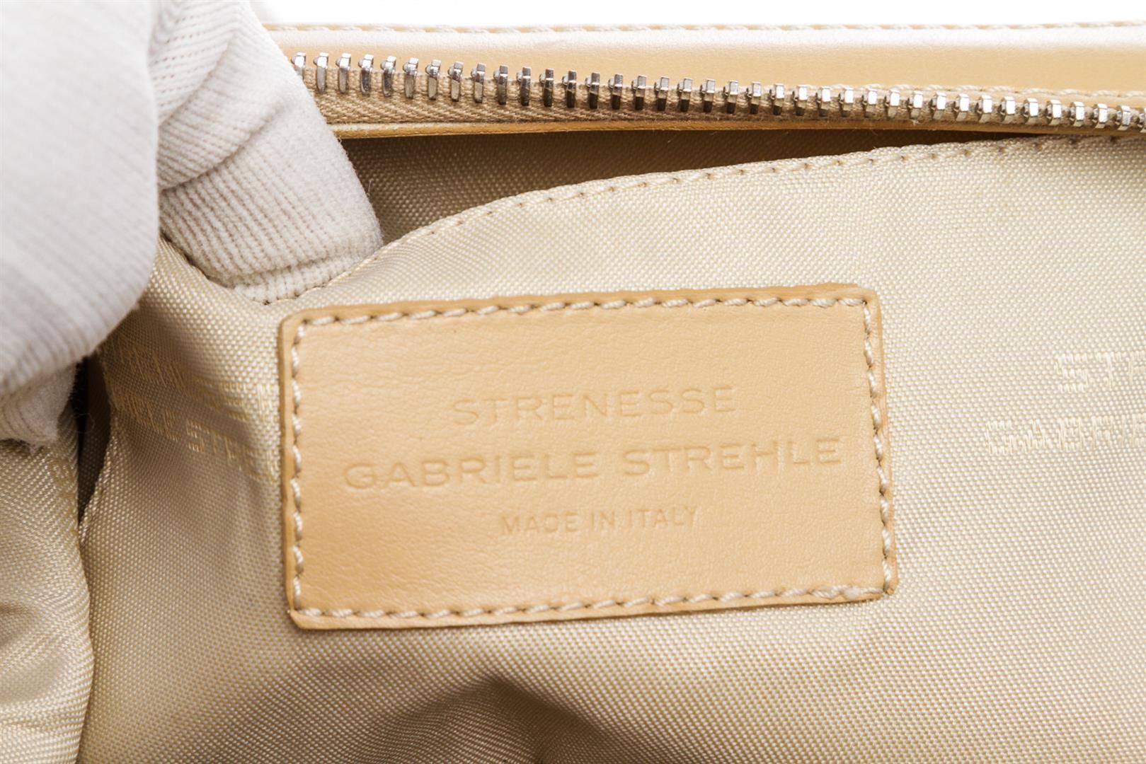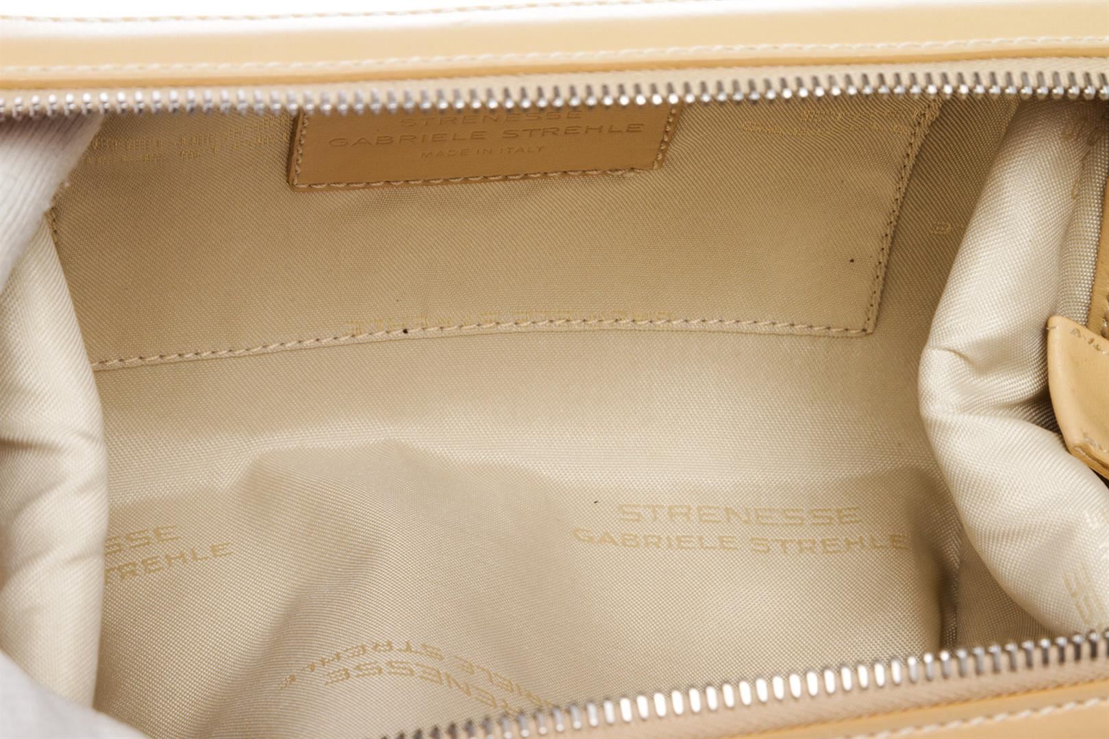Overall zipper closure. Interior is fabric lined with one side slip pocket.