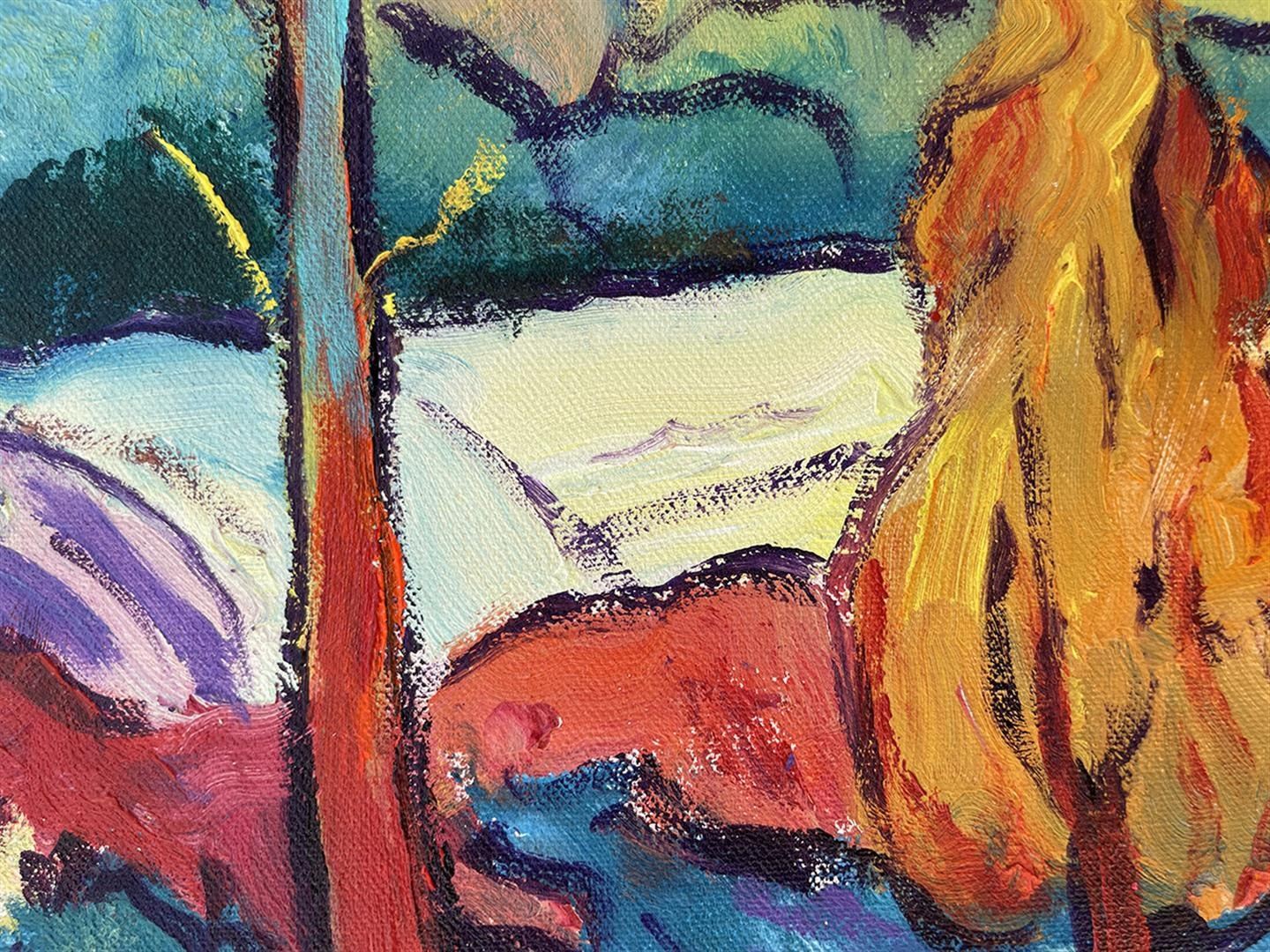 Stunning original acrylic on canvas. Hand signed by Artist. This artwork comes framed ready to hang. Art size 20x16 inches. Frame size 26x22.