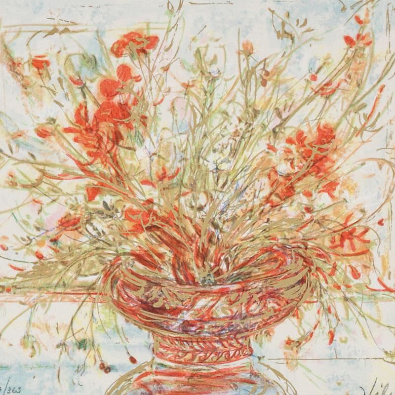 "Summer's End" is a limited edition serigraph on paper, numbered and hand signed by Edna Hibel (1917-2014). Includes Certificate of Authenticity! Measures approx. 12" x 12" (with border), 9.5" x 9" (image).