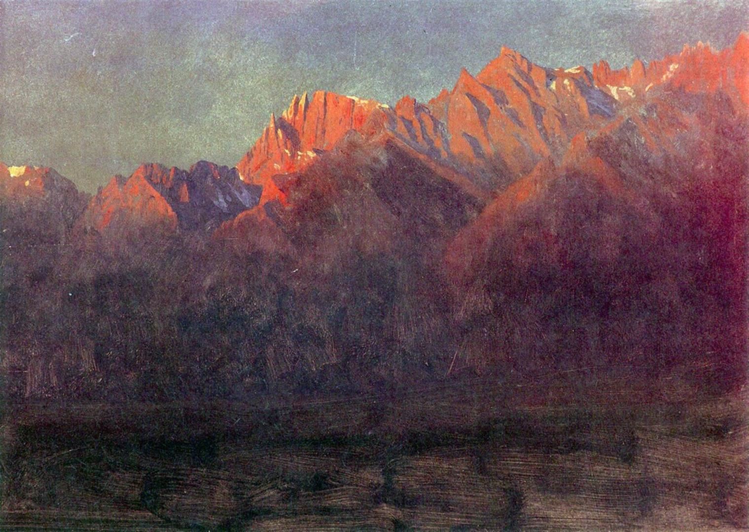 Artist: Albert Bierstadt - Title: Sunrise in the Sierras - Medium: Fine Art Giclee on Canvas - Image Size: Approximately 14.25 inches x 20 inches - Unframed on Unstretched Canvas - Biography: Bierstadt became internationally renowned for his beautiful and enormous paintings of the newly accessible American west, and his works found their way into public and private collections at staggeringly high prices for his time. His popularity and wealth rose to tremendous heights only to fade as the interest in the Boston School and impressionism turned public taste away from his highly detailed landscapes suffused with golden light. -