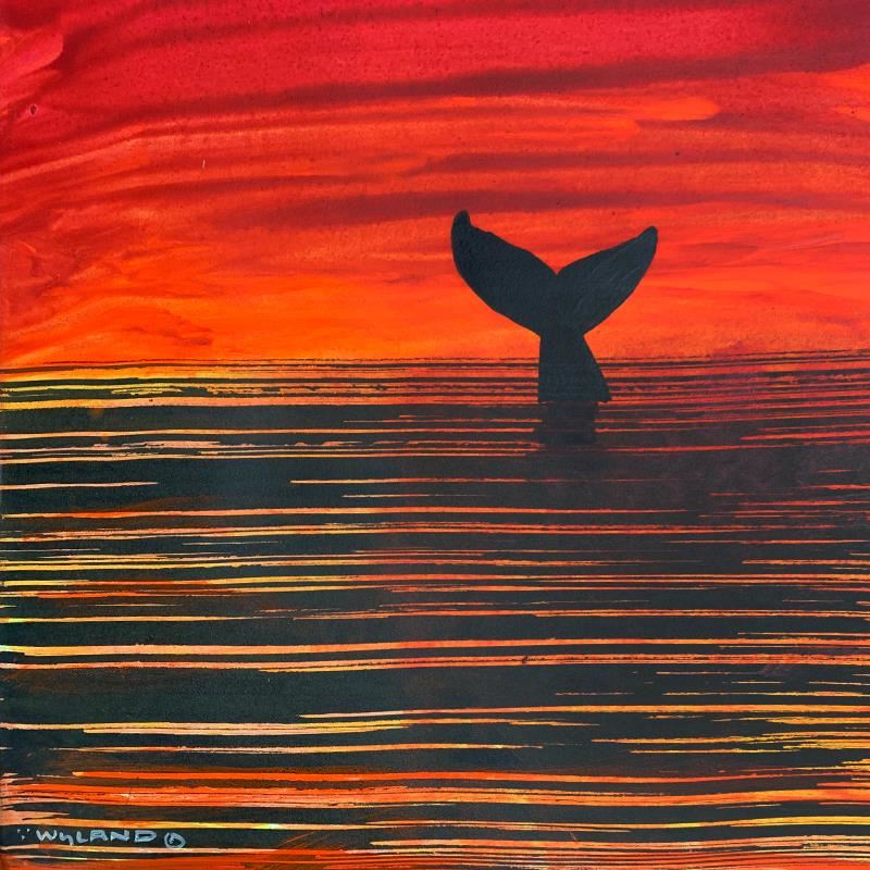 "Sunset Whale" is an original painting acrylic on deckle edge paper by Wyland. Hand signed by the artist, the piece comes custom framed and with a letter of authenticity. Measures approximately 26.5" x 14.5" (framed), 22.5" x 10.5" (image). This item requires special handling and may have a longer than usual turnaround
