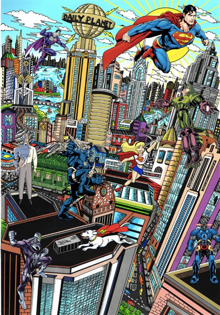 Superman Saves the Day (PR) 3D by Fazzino, Charles. Limited Hand Signed 3 Dimensional Serigraph Must Ship Flat. Dimensions: 27 x 20. Excellent Condition.