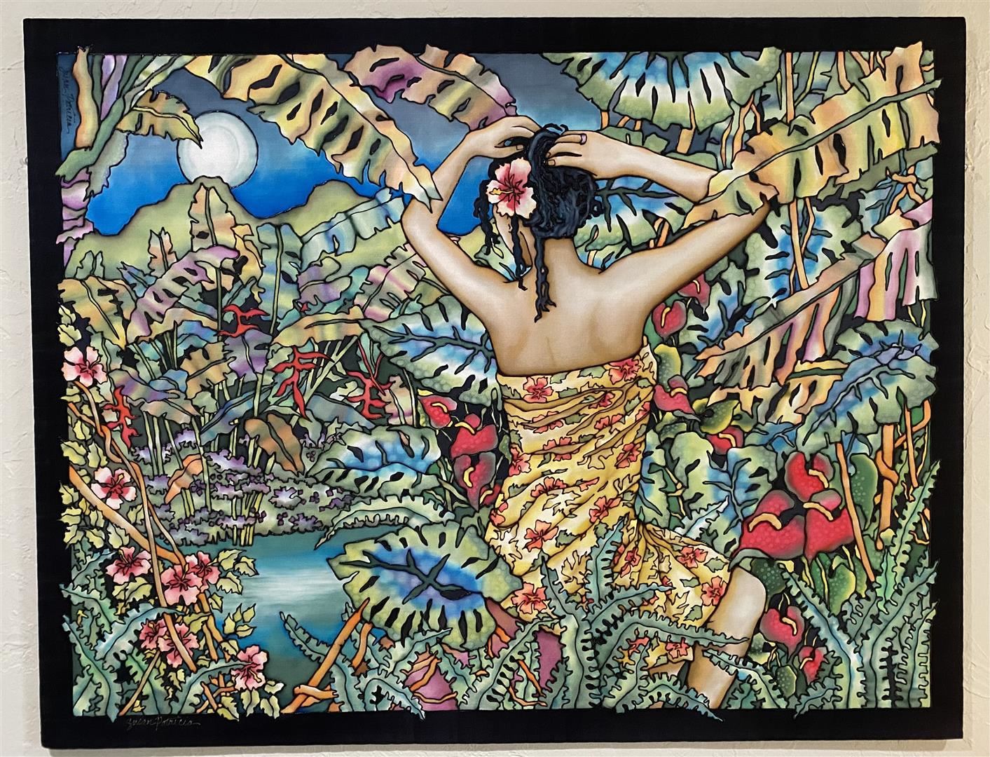 "Surrender to the Moon Again" by Hawaii's Susan Patricia. Original on silk w/ added texture, size 38 1/2" x 30"