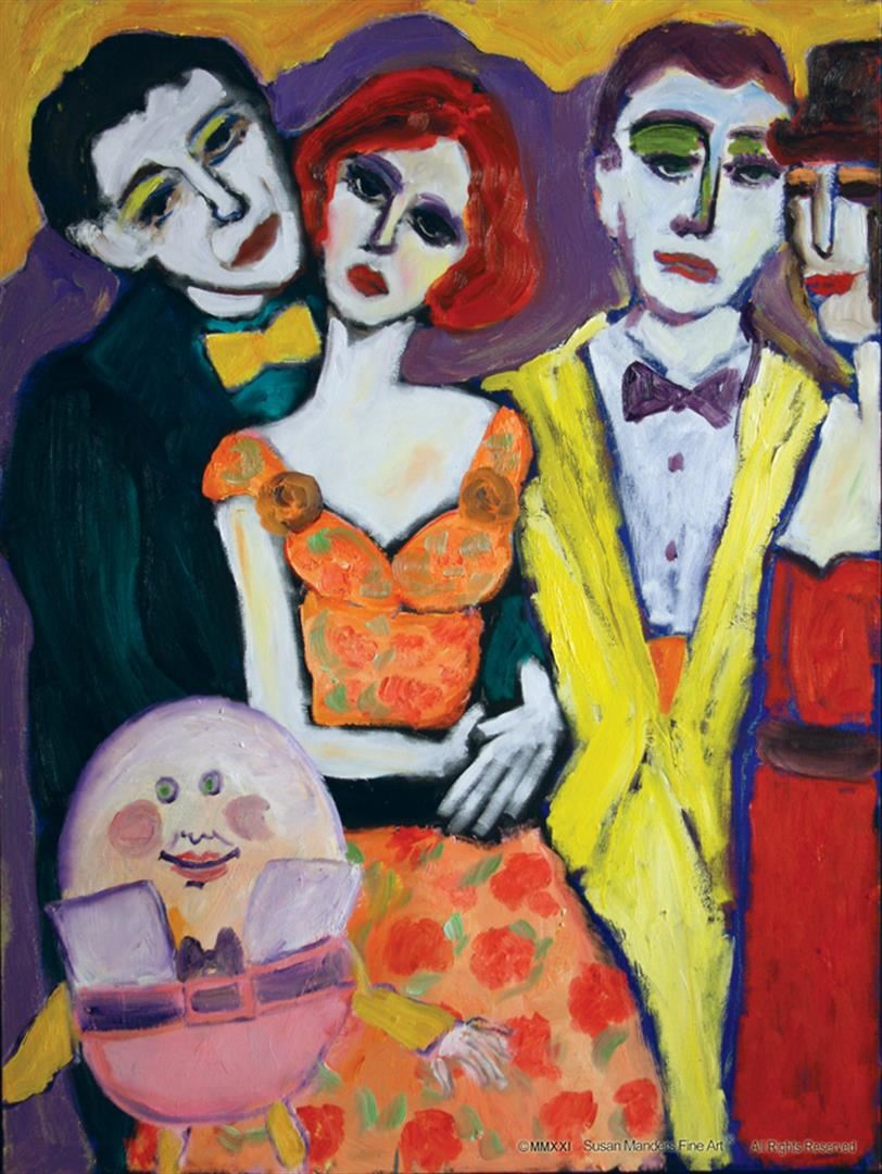 Susan Manders "Egg Me On" is a 30by40" original oil on canvas