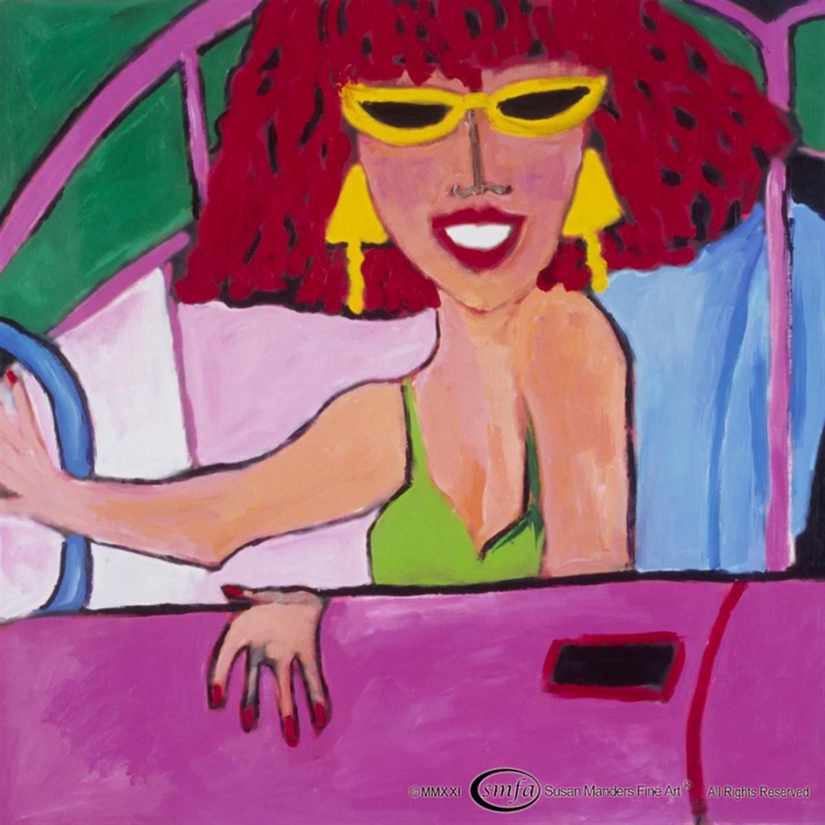 Susan Manders "Gotta Go Now" is a 30x30" original oil on canvas. She's got the top down and ready to party on . Susan Manders "Sleekster" is a 30x40" original oil on canvas. The Girl's gotta ride . Susan Manders is a National Award-winning artist. Susan Manders "Shoot The Moon" is a 30x40" original oil on canvas. A charming image in black, white & grey. Susan Manders "Lunch at The Hamptons" is a 48x48" original oil on canvas. Top shelf food & atmosphere for the fortunate few. Susan Manders "Spin The Bottle" is a 60x48" original oil on canvas. It's old fashioned fun , but still breaks the ice for these revelors. Susan Manders "Birthday Princess" is a 40x30" original oil on canvas. "Who doesn't want cake ? " Susan Manders "Rick's Place" is a 48x60" original oil on canvas. It's a late night at the Club.Susan Manders was only the 2nd Woman selected as a US Olympic artist in 1984. Susan Manders "Party On" is a 48x48" original oil on canvas. The gang's all here, so let's Celebrate! Susan Manders "Three's Company" is a 48x48" original oil on canvas. There's definitively something fishy going on here. Susan Manders "Lunch at The Downs" is a 48x48" original oil on canvas. This is Girl talk time .Susan Manders is in the National Museum of Women Artists. Susan Manders "Shut Up & Kiss Me" is a 48x48" original oil on canvas. "When will he ?" , asks the internationally acclaimed artist. Susan Manders "High Maintenance" is a 48x48" original oil on canvas. We've all been there in more than one romance . Susan Manders "High Tea" is a 48x48" original oil on canvas. It's a girl night out , but not really for tea. Susan Manders "Cruisin" is a 48x48" original oil on canvas. It has adorned the Cover of literary magazine "OntheBus" Susan Manders was only the 2nd Woman selected as a US Olympic artist in 1984.