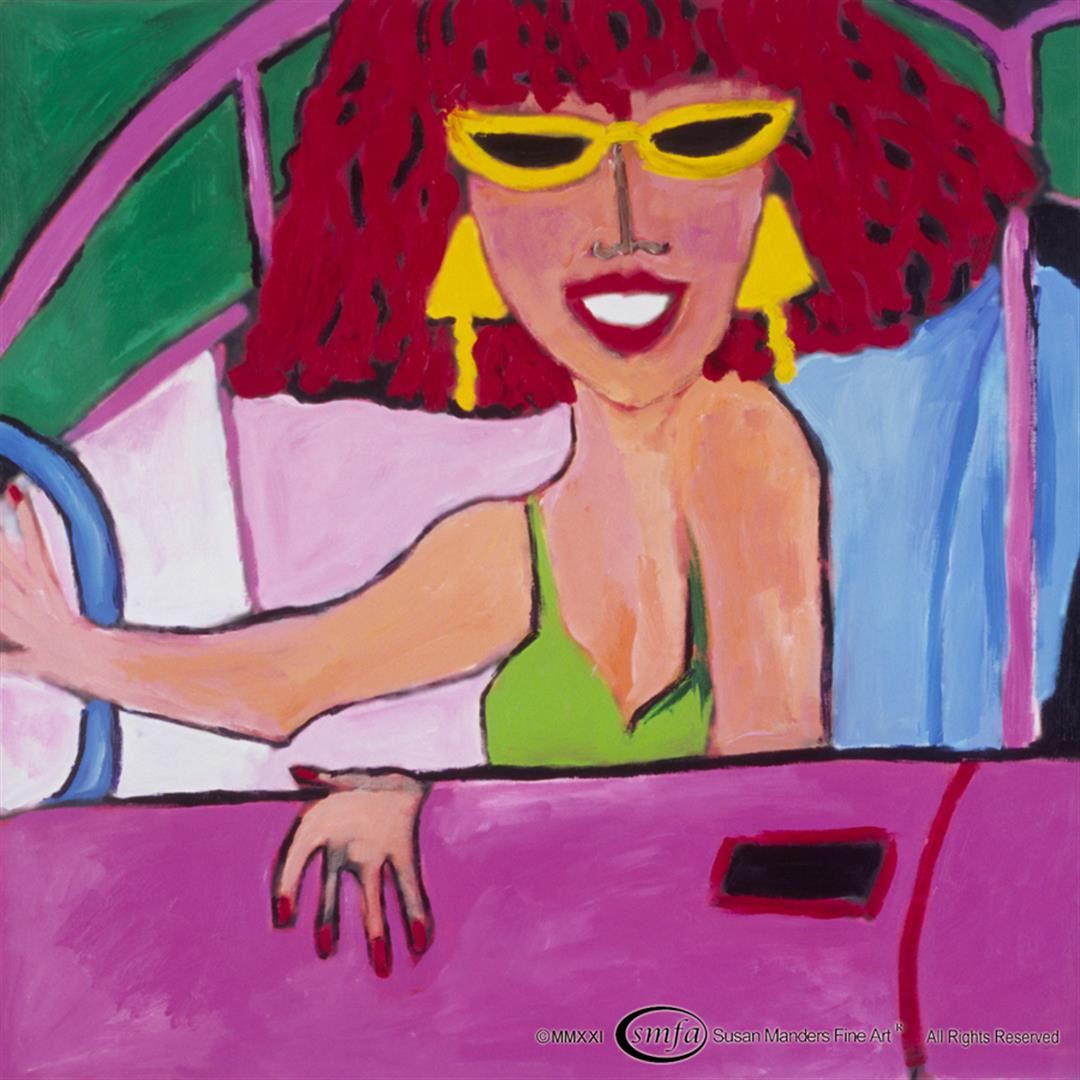 Susan Manders Original "Gotta Go Now" is a 30x30" original oil on canvas. She's got the top down and ready to party on . Susan Manders Original was only the 2nd Woman selected as a US Olympic artist in 2004. Manders works are represented in fine collections internationally & archived by the National Museum of Women in the Arts ,Washington, DC. As the 2nd woman to be selected a US Olympic Artist, Manders joins an exclusive club of internationally acclaimed artists.