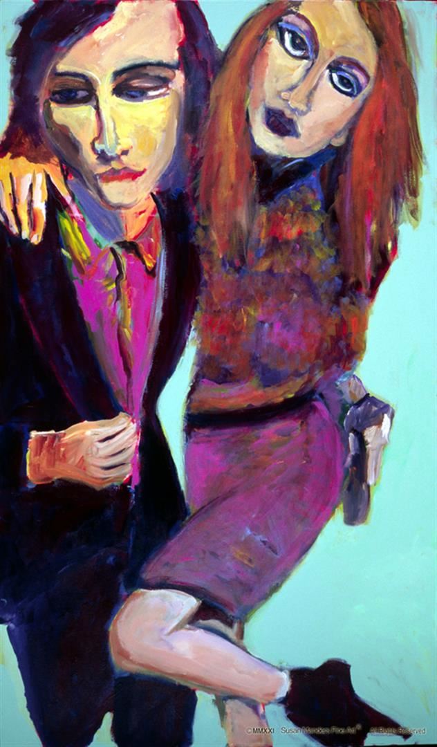 He's her man, says Susan Manders Original "Huggable" is a 36 x 60" original oil on canvas. Manders works are represented in fine collections internationally & archived by the National Museum of Women in the Arts ,Washington, DC.   As the 2nd woman to be selected a US Olympic Artist, Manders joins an exclusive club of internationally acclaimed artists.