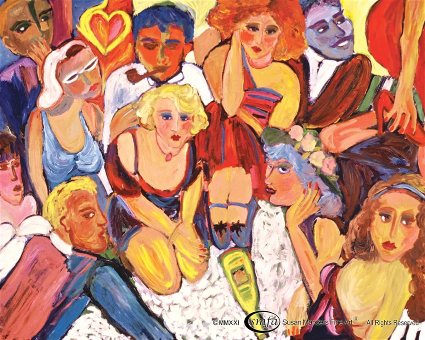Susan Manders "Spin The Bottle" is a 60by48" original oil on canvas