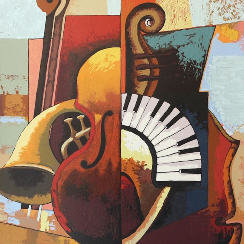 "Symphony III" is a limited edition Serigraph on Paper by Igor Kovalev. The piece is numbered, hand signed by the artist, and come with a letter of authenticity. Measures approximately 19" x 17".