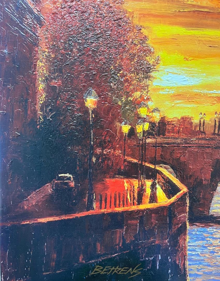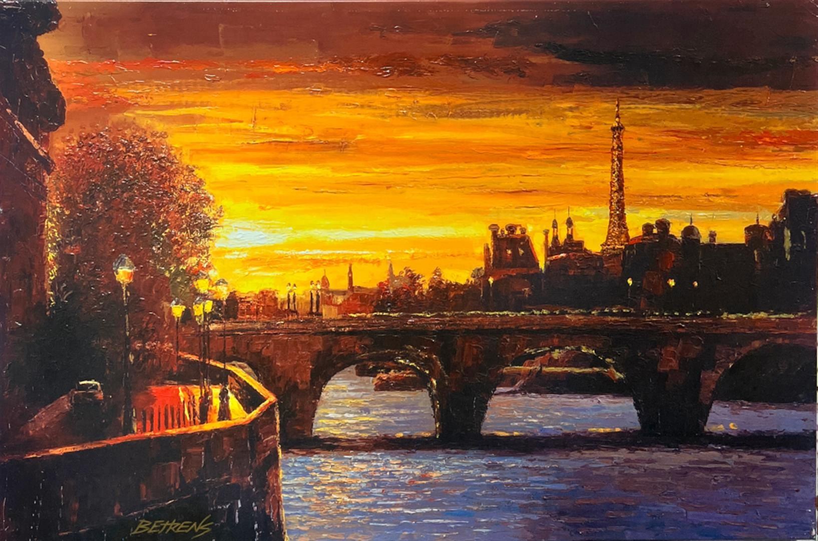 TWILIGHT ON THE SEINE, II by Behrens, Howard. Limited Hand Signed Heavily Embellished Stretched. Dimensions: 24 x 36. Excellent Condition.