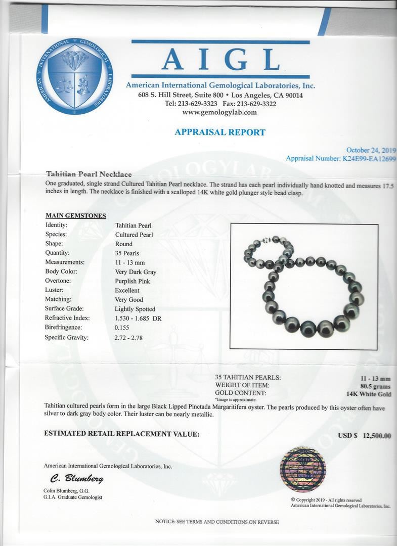 One Tahitian Pearl Necklace - 14KT White Gold. AIG certified. See Appraisal for more details. AIG Appraised.