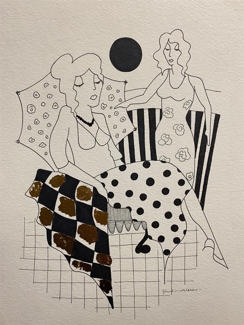 Tarkay Lady 5 by Del Mar, Paulina. Original One-of-a-Kind Hand Signed Pen and Ink. Dimensions: 15 x 11. Excellent Condition.