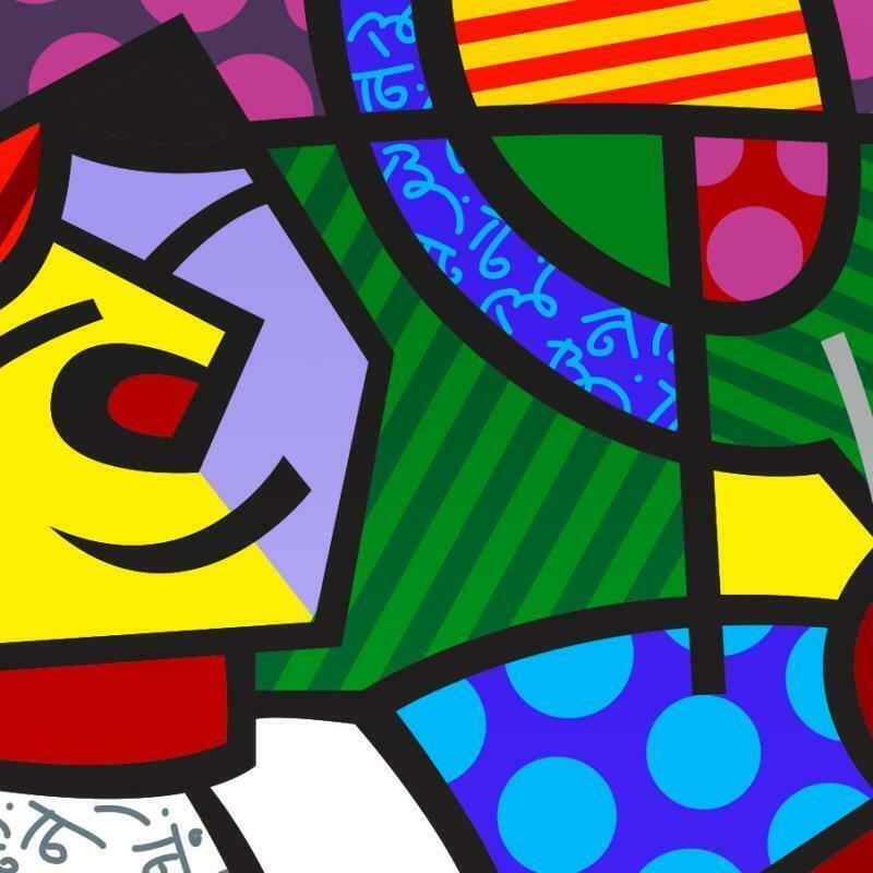 "Tennis Match" is an open edition giclee on canvas by Romero Britto. The piece comes hand signed by the artist and is authenticated en verso with the official Britto stamp. Measures approximately: 16" x 20".