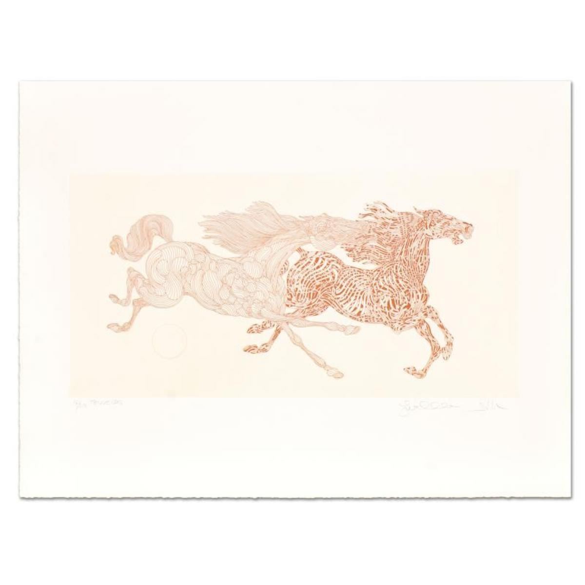 "Tennue (Sienna)" is a limited edition etching on paper by Guillaume Azoulay, numbered and hand signed by the artist. Includes Letter of Authenticity. Measures approx. 30" x 22.5" (border), 22" x 14" (image).