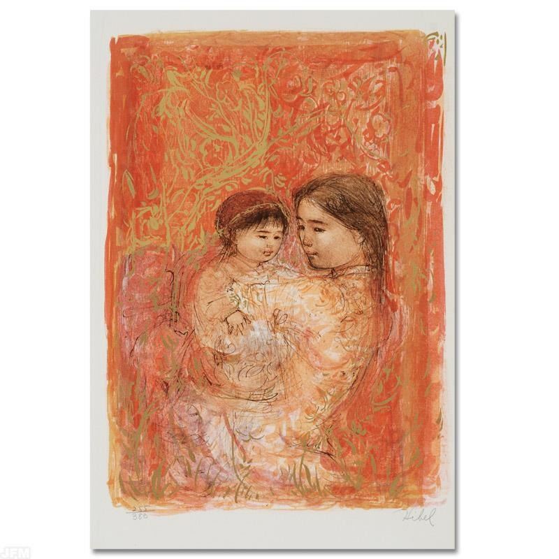 "Thai Family" is a limited edition lithograph on paper, numbered and hand signed by Edna Hibel (1917-2014). Includes Certificate of Authenticity! Measures approx. 13" x 20" (with border), 11" x 16" (image).