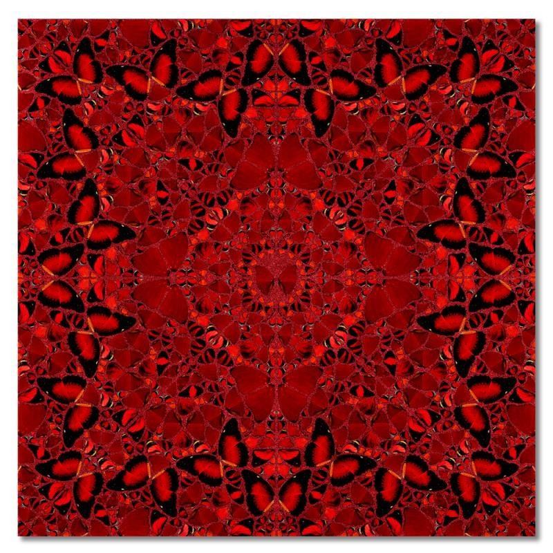 "The Empresses Suite" is a 5 piece suite of limited editions individually numbered and signed. The pieces are laminated giclee on aluminium composite, screen printed with glitter by Damien Hirst. The suite has matching numbers in their respective editions and each pieces is signed and numbered on their labels and each come with a certificate of authenticity. Measures approximately 39" x 39" (each piece).