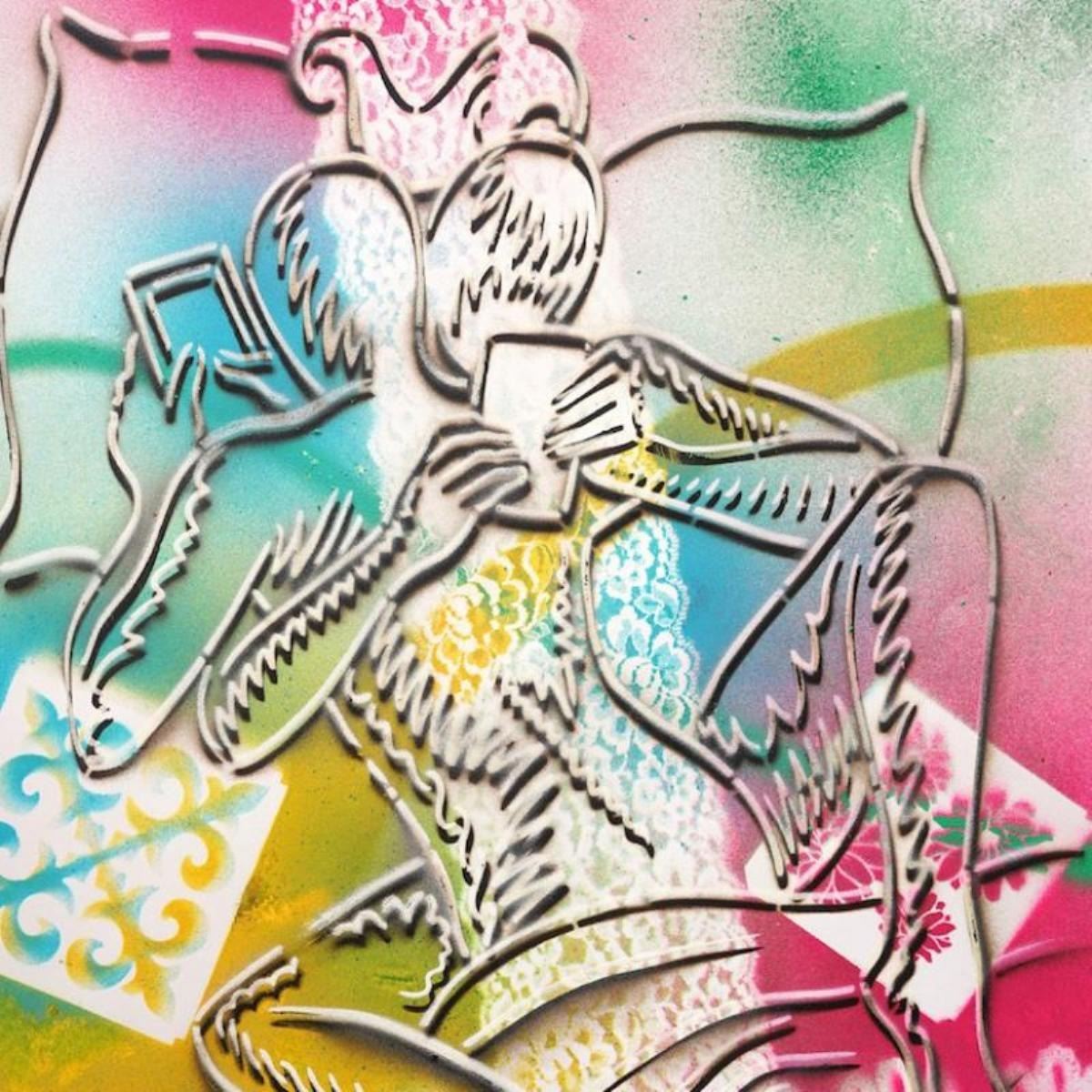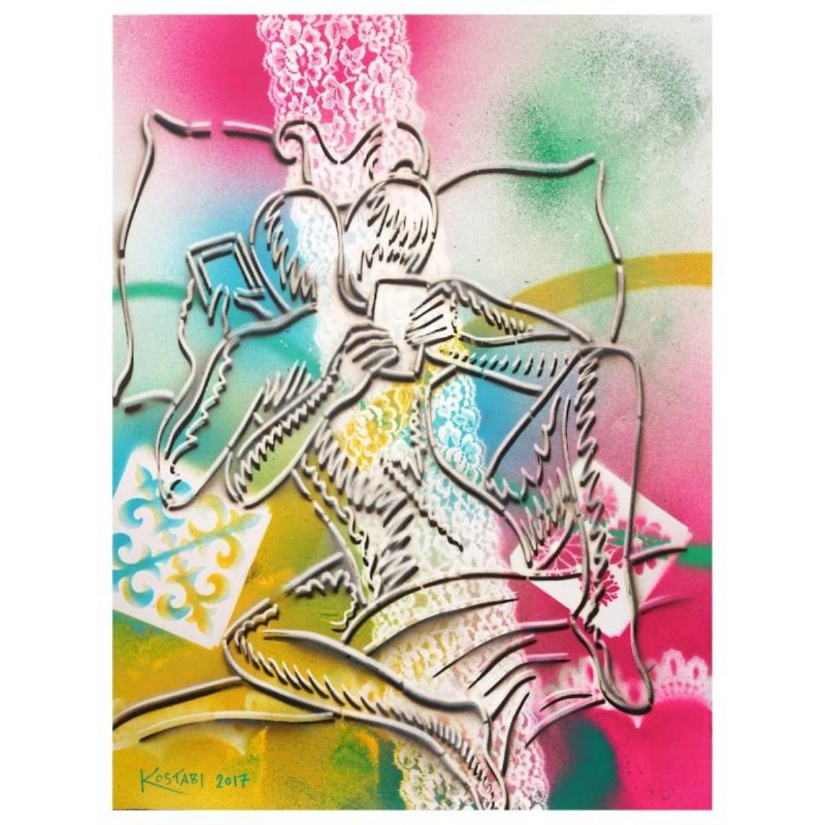 "The Fabric Of Passion" is a mixed media original painting on paper, by Mark Kostabi. The piece is hand signed and comes with a certificate of authenticity. Measures approximately 30" x 22.5".