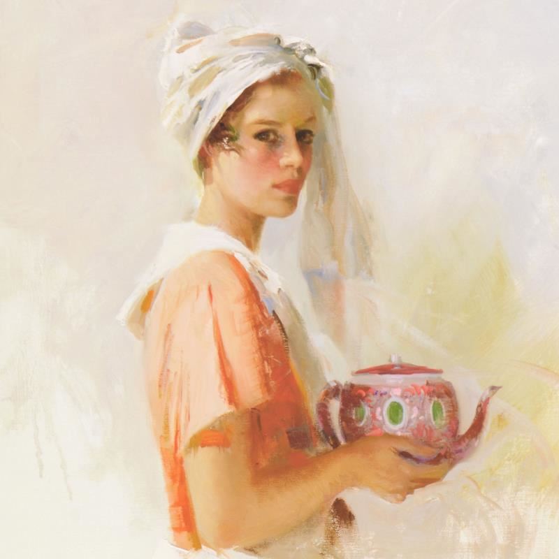 The Gift is a limited edition giclee on canvas by Pino (1939-2010), numbered and hand signed by the artist. Includes Certificate of Authenticity. Measures approx. 16 x 12 (image).
