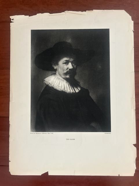 Antique reproduction of Rembrandt etching on paper, 16.5 " x 12.5", image approx. 10.25" x 8"