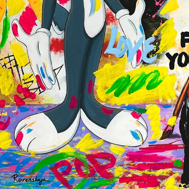 "The Godfather" is a one-of-a-kind mixed media on deckle edge paper by Nastya Rovenskaya; hand signed by the artist. This piece comes custom framed and includes letter of authenticity. Measures approximately 46" x 36" (framed), 40" x 30" (image).