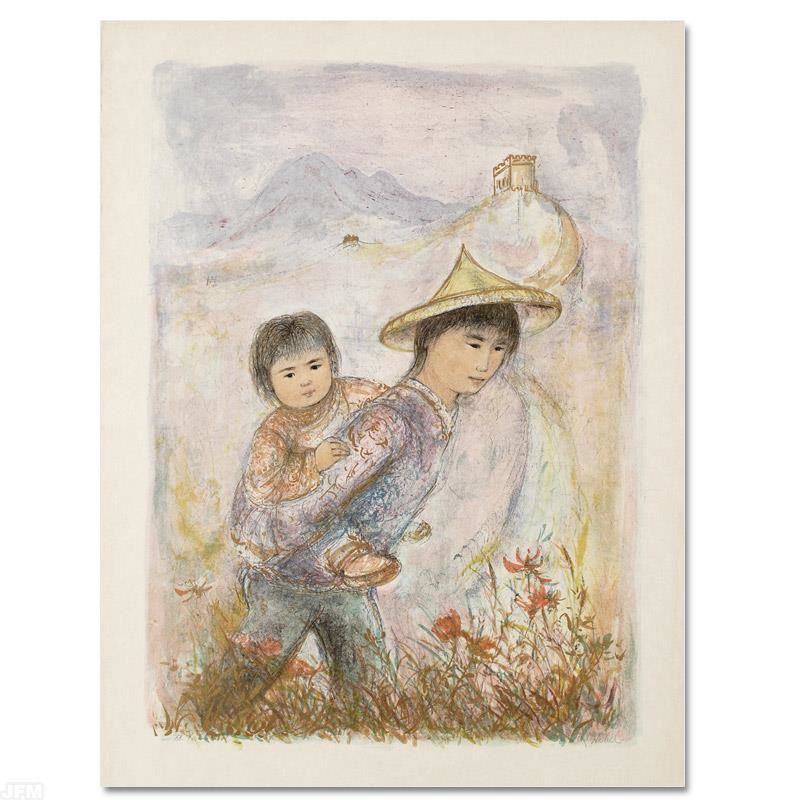 "The Great Wall" is a limited edition lithograph on rice paper, numbered and hand signed by Edna Hibel (1917-2014). Includes Certificate of Authenticity! Measures approx. 22" x 30" (with border), 19" x 25.5" (image).