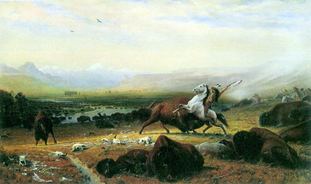 Artist: Albert Bierstadt - Title: The Last Buffalo - Medium: Fine Art Giclee on Canvas - Image Size: Approximately 11.75 inches x 20 inches - Unframed on Unstretched Canvas - Biography: Bierstadt became internationally renowned for his beautiful and enormous paintings of the newly accessible American west, and his works found their way into public and private collections at staggeringly high prices for his time. His popularity and wealth rose to tremendous heights only to fade as the interest in the Boston School and impressionism turned public taste away from his highly detailed landscapes suffused with golden light. -