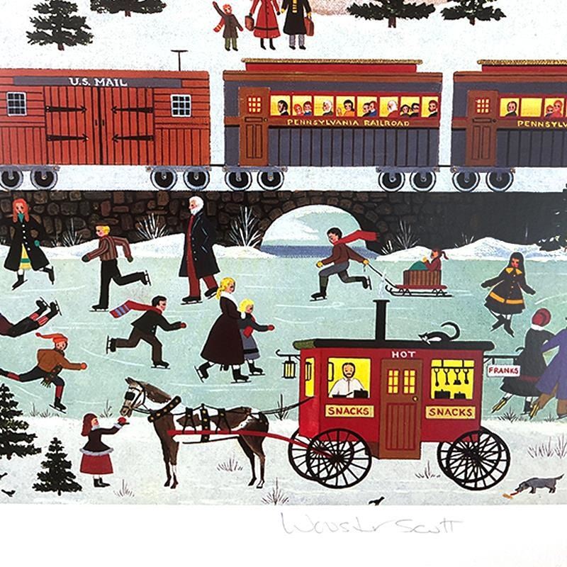 "The View at Ardmore Junction" is a limited edition lithograph on paper by Jane Wooster Scott, numbered and hand signed by the artist. Includes letter of authenticity. Measures approx. 13.5" x 16.5" (border), 12" x 14.5" (image)