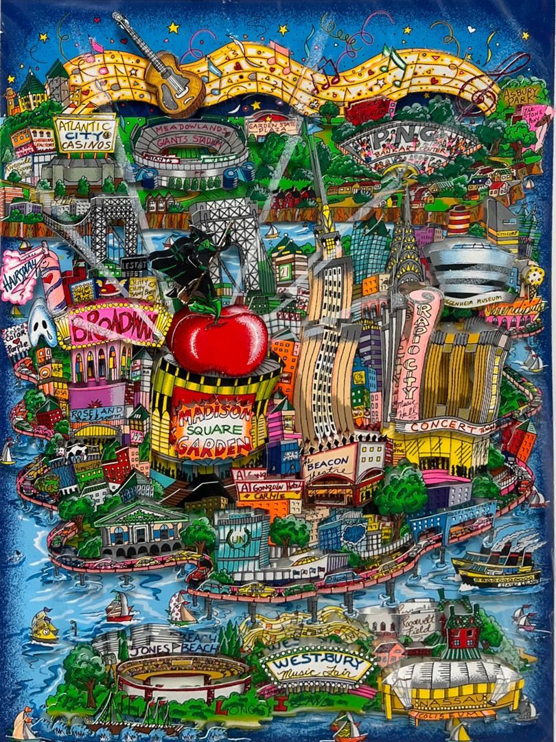 There's Music NY. NJ & Long Island Too by Fazzino, Charles. Limited Hand Signed 3 Dimensional Serigraph Must Ship Flat. Dimensions: 23.5 x 19 x 1.5. Excellent Condition.