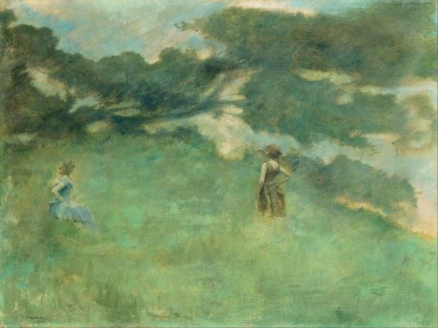 Artist: Thomas Dewing - Title: The Hermit Thrush - Medium: Fine Art Giclee on Canvas - Image Size: Approximately 24 inches x 32 inches - Framed: Unframed on Unstretched Canvas - Biography: Thomas Wilmer Dewing (May 4, 1851 - November 5, 1938) was an American painter working at the turn of the 20th century. Schooled in Paris, Dewing was noted for his figure paintings of aristocratic women. He was a founding member of the Ten American Painters and taught at the Art Students League of New York. The Freer Gallery of Art at the Smithsonian Institution has a collection of his works. He was the husband of fellow artist Maria Oakey Dewing.