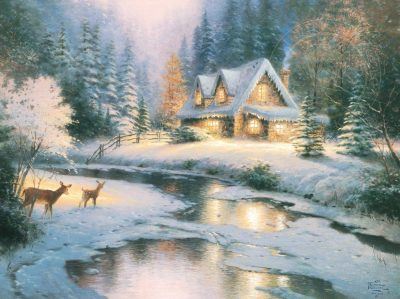Thomas Kinkade Deer Creek Cottage is a limited edition paper lithograph, signed and numbered with COA. Image 12x16".