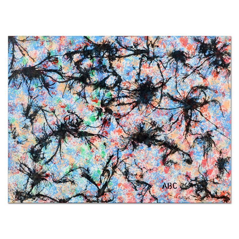 "Thoughts" is an original mixed media on canvas by Tom Pergola, hand signed by the artist. This piece comes gallery wrapped. Includes Certificate of Authenticity. Measures approx. 40" x 30" (image).