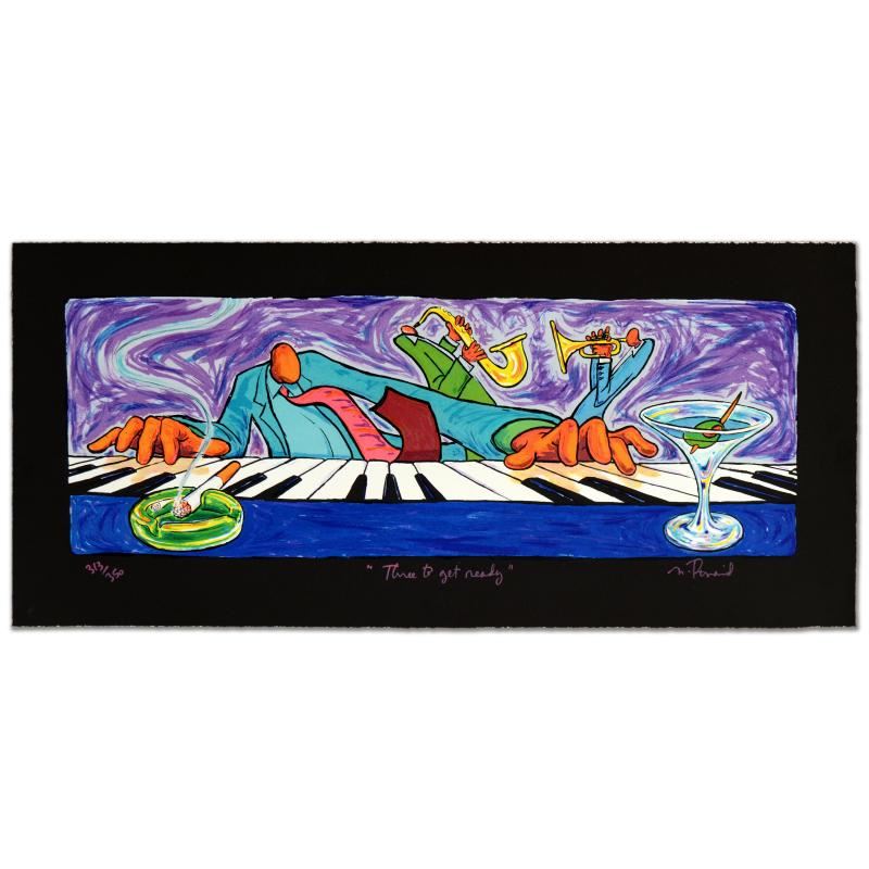 "Three To Get Ready" is a limited edition hand pulled original lithograph on museum quality deckle-edge paper, numbered and hand signed by Matt Rinard. Includes Certificate of Authenticity! Measures approx. 28" x 11" (image). This lithograph was created on a rare antique Marinoni Voirin French press that dates back to the 1800's. It provides highly pigmented inks that will resist fading and preserve the integrity of the print for more than a lifetime. This process is the most elaborate, costly and effective way to reproduce art while maintaining the brilliance and accuracy of the original creation.