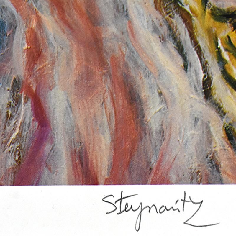 "Three Women" is a limited edition lithograph on paper by Zamy Steynovitz (1951-2000), numbered and hand signed by the artist. Includes Letter of Authenticity. Measures approx. 22" x 28" (border), 19" x 24.5" (image). Please note: There are imperfections (discoloration/creases) in the white border area that may be concealed when framed.