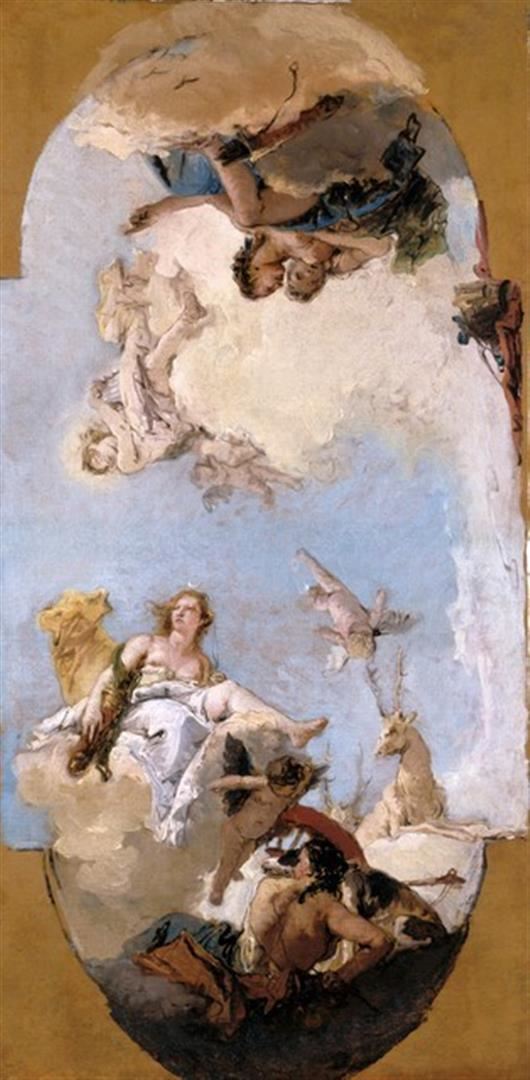 Artist: Tiepolo - Title: Diana, Apollo and Nymphs - Medium: Fine Art Reproduction Giclee on Canvas - Image Size: Approximately 32 inches x 15.75 inches - Unframed on Unstretched Canvas - Biography: Giovanni Battista Tiepolo (March 5, 1696 - March 27, 1770), also known as Giambattista (or Gianbattista) Tiepolo, was an Italian painter and printmaker from the Republic of Venice who painted in the Rococo style, considered important member of the 18th-century Venetian school. He was prolific, and worked not only in Italy, but also in Germany and Spain.