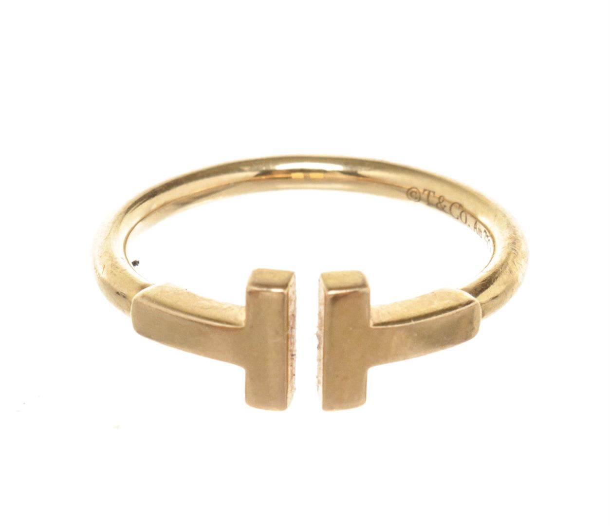 One Tiffany & Co Gold T Wire Ring 5.5. Item is sold AS-IS. All available information is listed in the description and shown in the photo. Tiffany and Co Gold T Wire Diamond Ring with gold-tone hardware. Size: 5.5