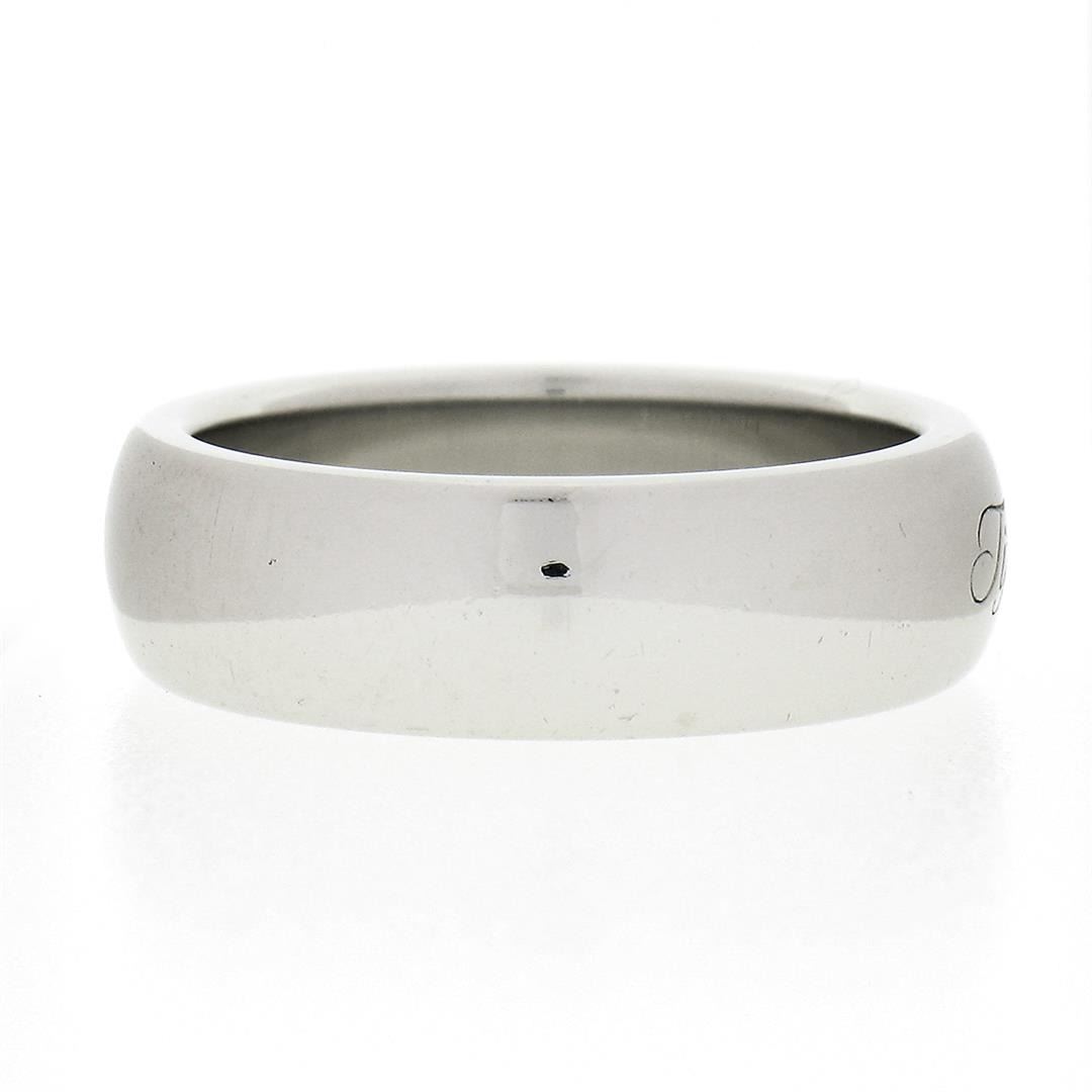 A solid platinum band ring by tiffany & co. The ring is size 5.5, weighs a total of 12.65 grams, and measures 5.85mm wide.