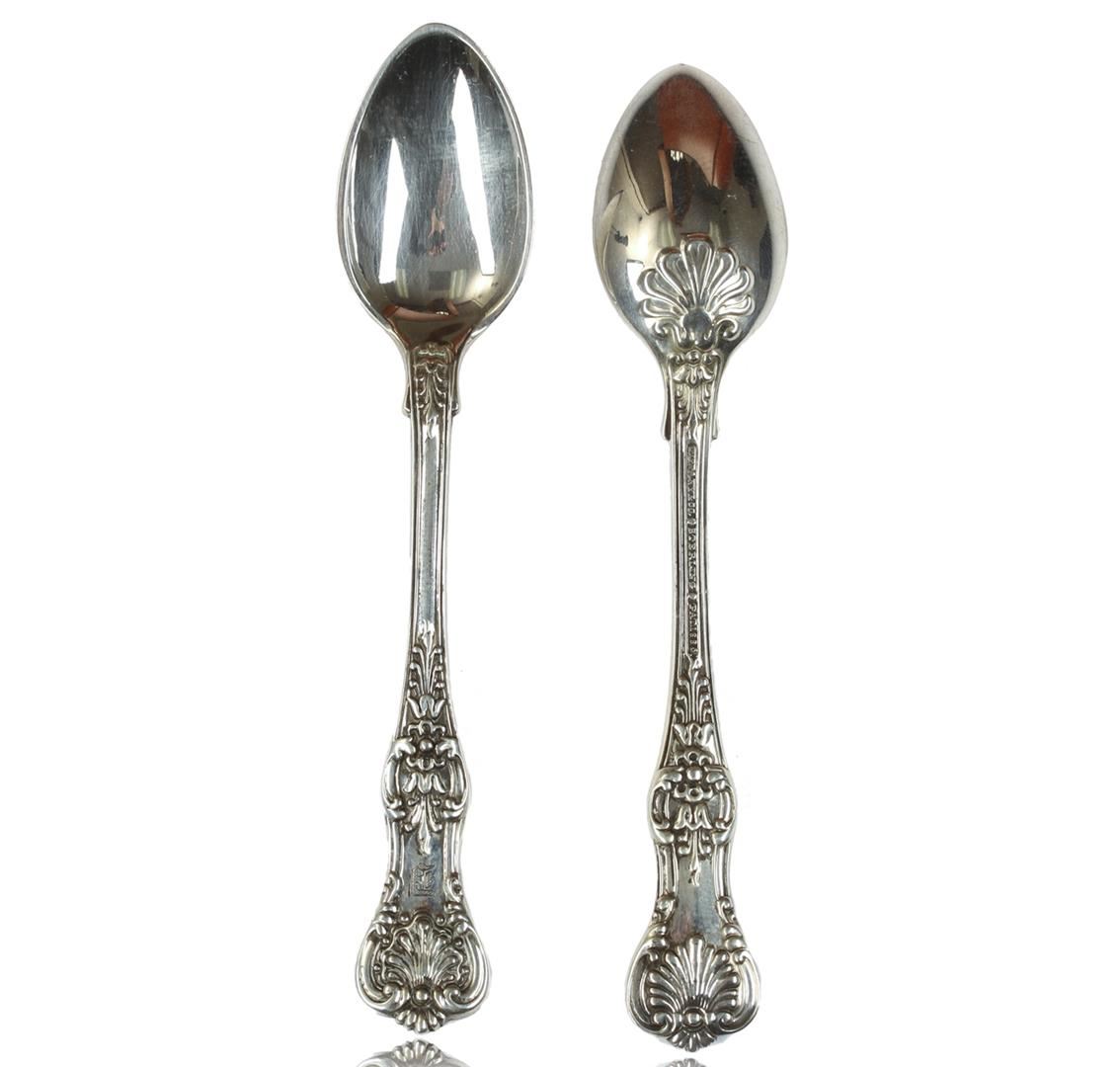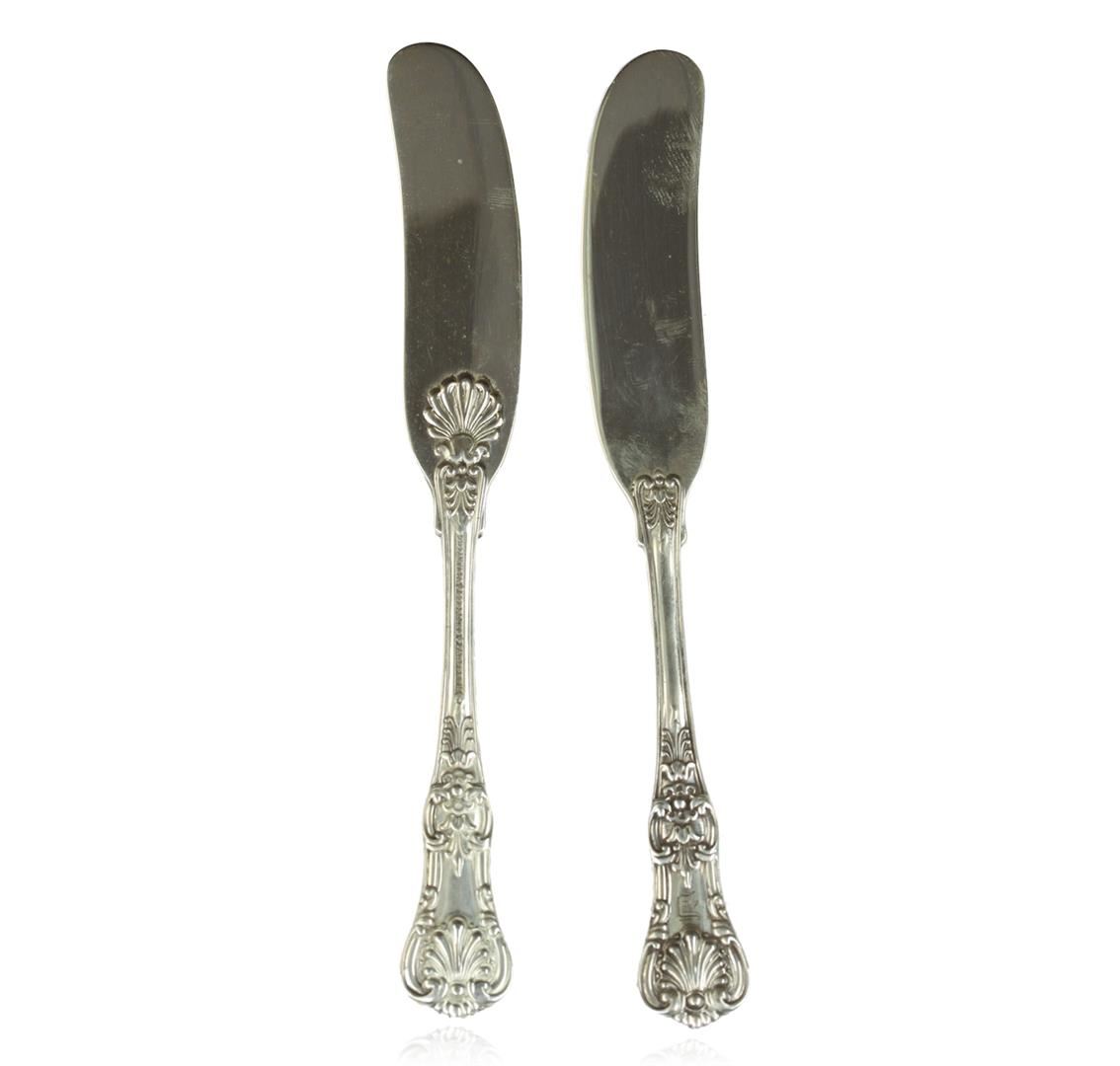 This is a fine quality antique sterling silver service by Tiffany & Co. in the English King pattern. It is an antique heavy flatware service for 8. It was made by Tiffany & Co. in 1885. Each has a lovely "D" monogram. There are 8 each of the following: knives (about 10 1/8"); forks (about 7 1/2"); salad forks (about 6 1/2"); teaspoons (about 5 3/4"); small soups or bouillons (about 5 1/4"); butter knives (about 5 3/4"); small sugar spoons (about 4"); 4 serving spoons (about 8 1/2"); a very large serving spoon (about 8 3/4") and a large serving fork (about 8 1/2"). There are an additional 8 teaspoons. This large set has 70 pieces. This estate service has not been recently polished. It is a great antique set. It is in excellent condition with only slight signs of usage. There is no indication of any monograms being buffed out. This is a great example for your collection! Valued between $10,000-$12,000. Comes in a beautiful new mahogany inlaid wood chest.