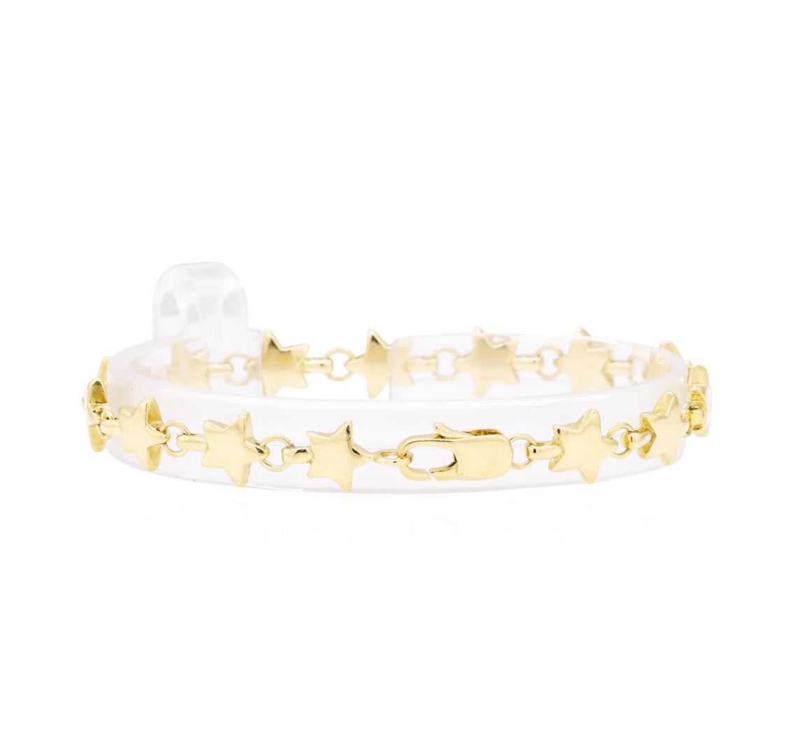 One Tiffany and Company star link bracelet featuring: 18KT yellow gold weighing 19.6 grams. The bracelet measures approximately seven inches in length.