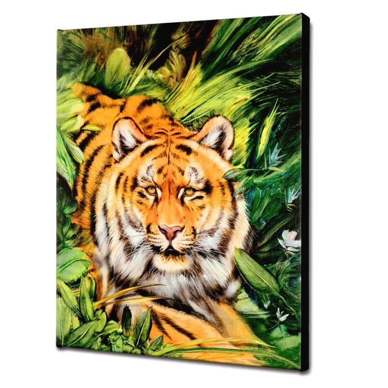 "Tiger Surprise" is a limited edition giclee on canvas by Martin Katon, numbered and hand signed by the artist! This piece comes gallery wrapped. Includes Letter of Authenticity. Measures approx. 16" x 20" (image).