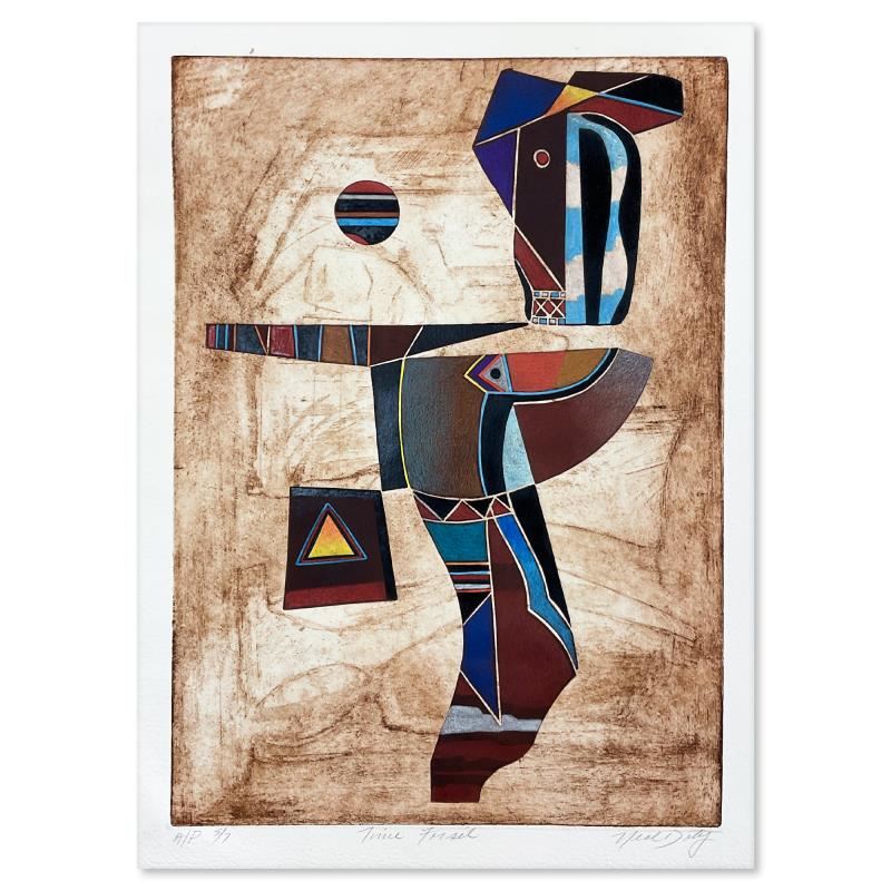 "Time Fossil" is a unique variation mixed media on paper by Neal Doty (1941-2016), AP numbered 5/7 and hand signed by the artist. Includes Letter of Authenticity. Measures approx. 20" x 26" (border), 15.5" x 21.5" (image).