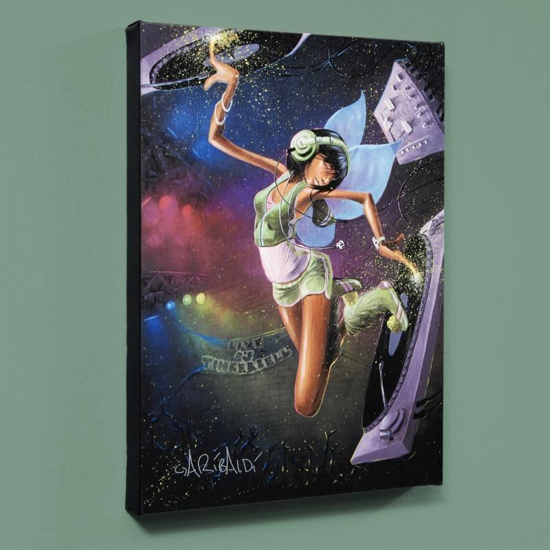 Combining his passions for music and art, David Garibaldi creates visual poetry "Tinkerbell" is a limited edition giclee on stretched canvas, E numbered and bearing the artist's authorized signature. This piece comes gallery wrapped. Includes Letter of Authenticity. Measures approx. 27" x 36" (image).