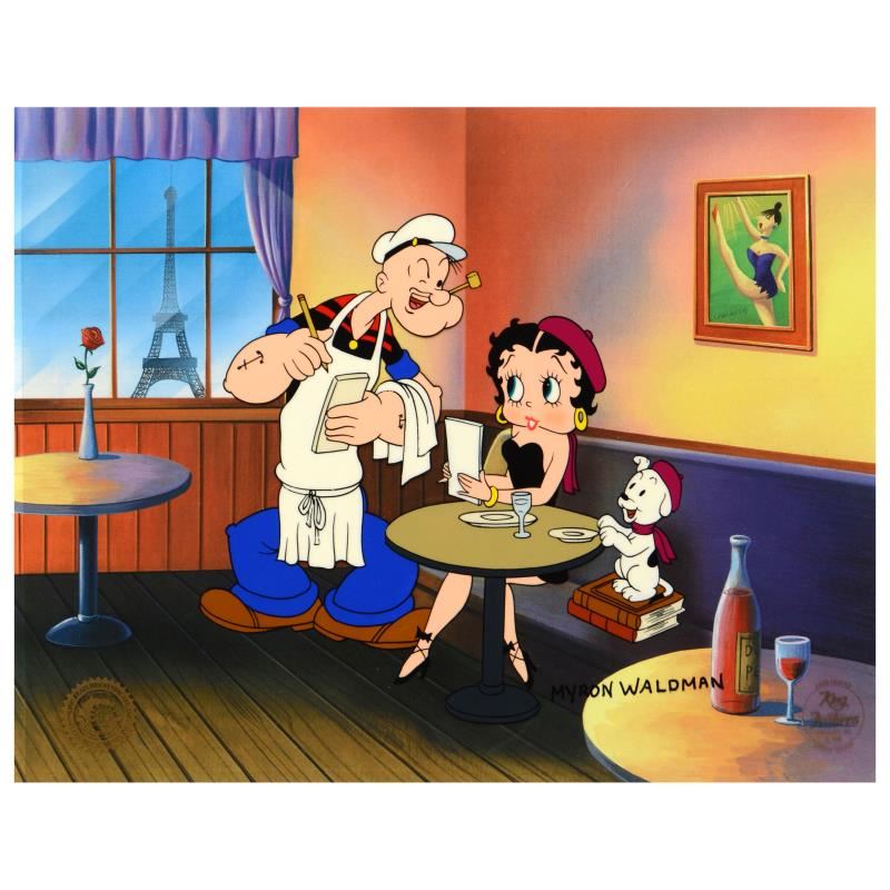 "Today's Special" is a limited edition hand inked and hand painted animation cel with background, numbered and hand signed by Myron Waldman (1908-2006). Includes Certificate of Authenticity! Measures approx. 14" x 12" (background with cel).