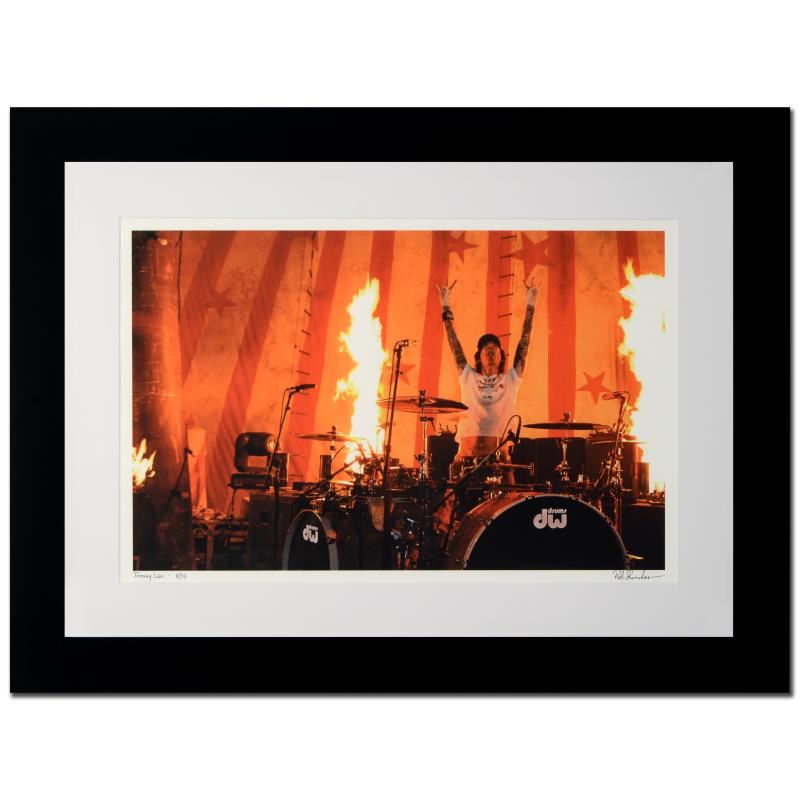 "Tommy Lee" is a limited edition giclee on paper, numbered and hand signed by acclaimed music industry photographer Rob Shanahan. This piece comes custom framed. Includes Certificate of Authenticity. Measures approx. 32" x 25" (with frame), 22" x 14" (image).