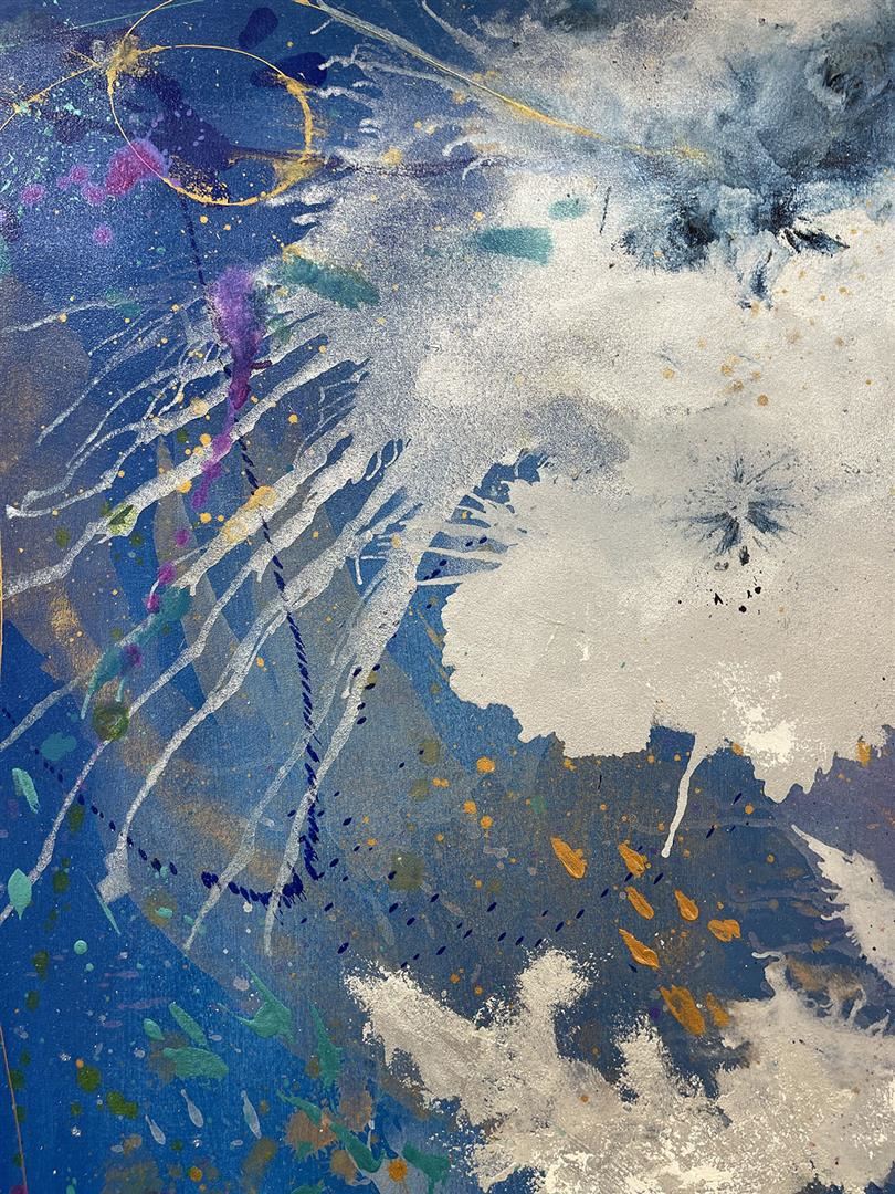 Superb original acrylic on canvas. Hand signed by artist. This artwork comes rolled ready to stretch. Approximately 40x60 inches