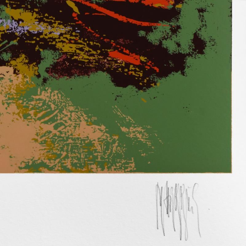 "Total Tennis" is a limited edition serigraph on paper by Mark King (1931-2014), numbered and hand signed by the artist. Includes Letter of Authenticity. Measures approx. 41" x 32" (border), 35" x 25.5" (image). Please note: due to the age of this piece there is minor wear in the white border area.