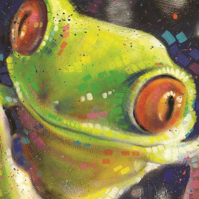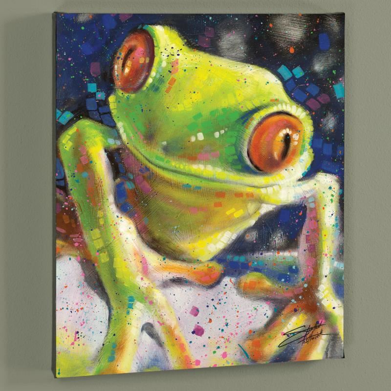 With bright colors and expressive lines, Stephen Fishwick puts a unique spin on pop culture portraits. "Trees" is a limited edition giclee on stretched canvas, numbered and bears the artist's authorized signature. This piece comes gallery wrapped! Includes Letter of Authenticity. Measures approx. 16" x 20" (image).