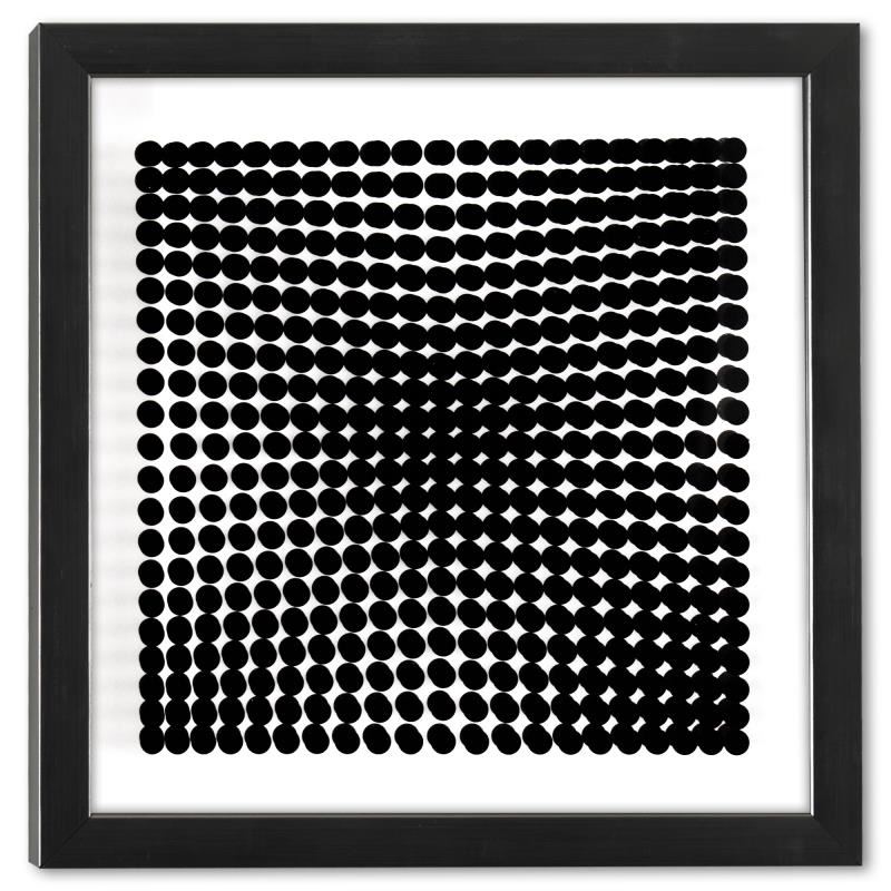 "Trois Dimensions Optique de la série Cinetiques" is a dimensional artwork, published in 1973, by Victor Vasarely (1908-1997). This piece comes custom framed, with a letter of authenticity and with a 1976 Vasarely paperback. Measures approx. 11.5" x 11.5" (frame), 9" x 9" (image).