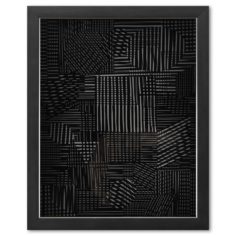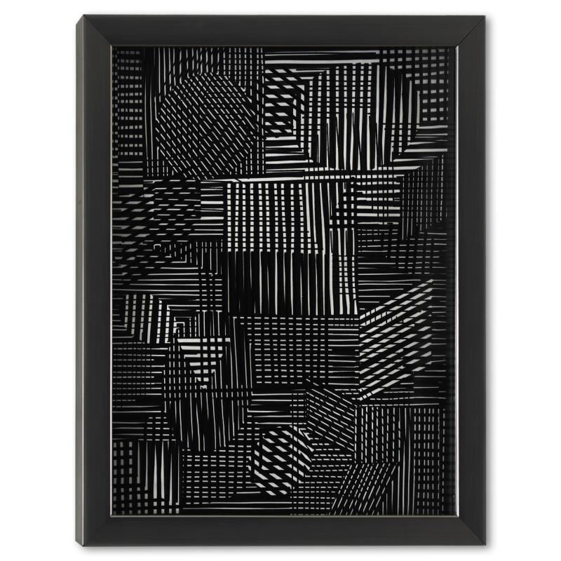 "Trois Dimensions Optique de la série Cinetiques" is a dimensional artwork, published in 1973, by Victor Vasarely (1908-1997). This piece comes custom framed, with a letter of authenticity and with a 1976 Vasarely paperback. Measures approx. 10.5" x 13" (frame), 8.5" x 11" (image).