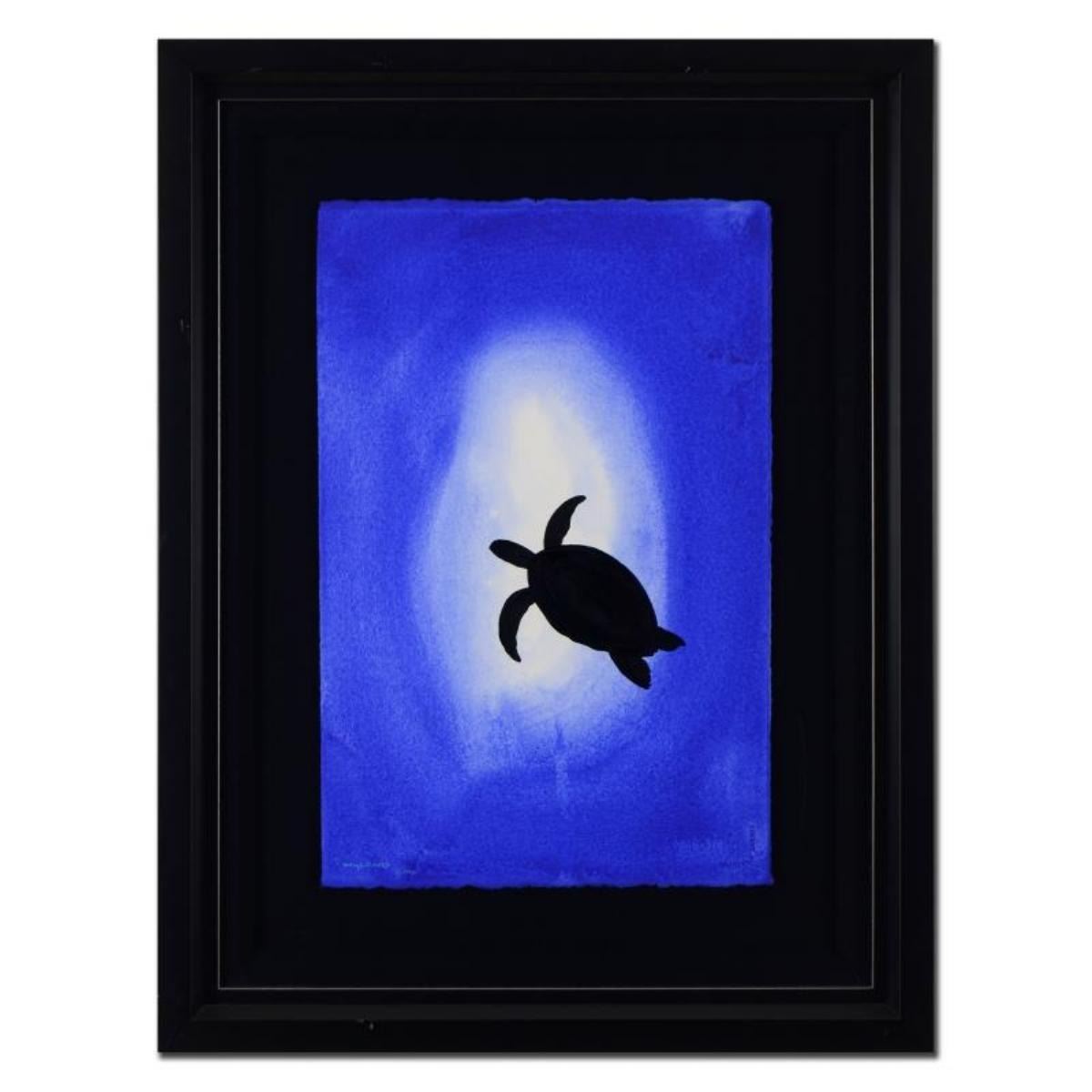 "Turtle" is an original watercolor painting on paper by Wyland, hand signed by the artist. This piece comes framed. Includes Certificate of Authenticity. Measures approx. 25.5" x 33" (frame), 15" x 22" (image). ** Please note: There is noticeable wear on the frame. **